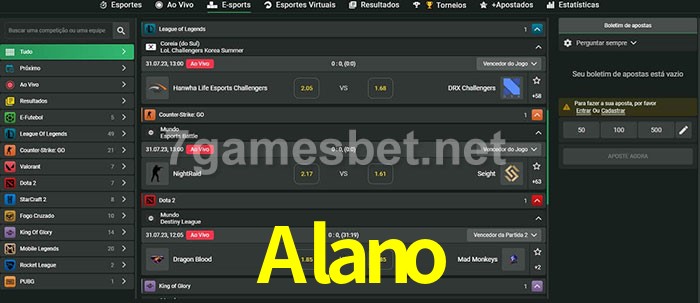 O Alano oferece uma grande seleção de opções de apostas em e-sports com probabilidades competitivas